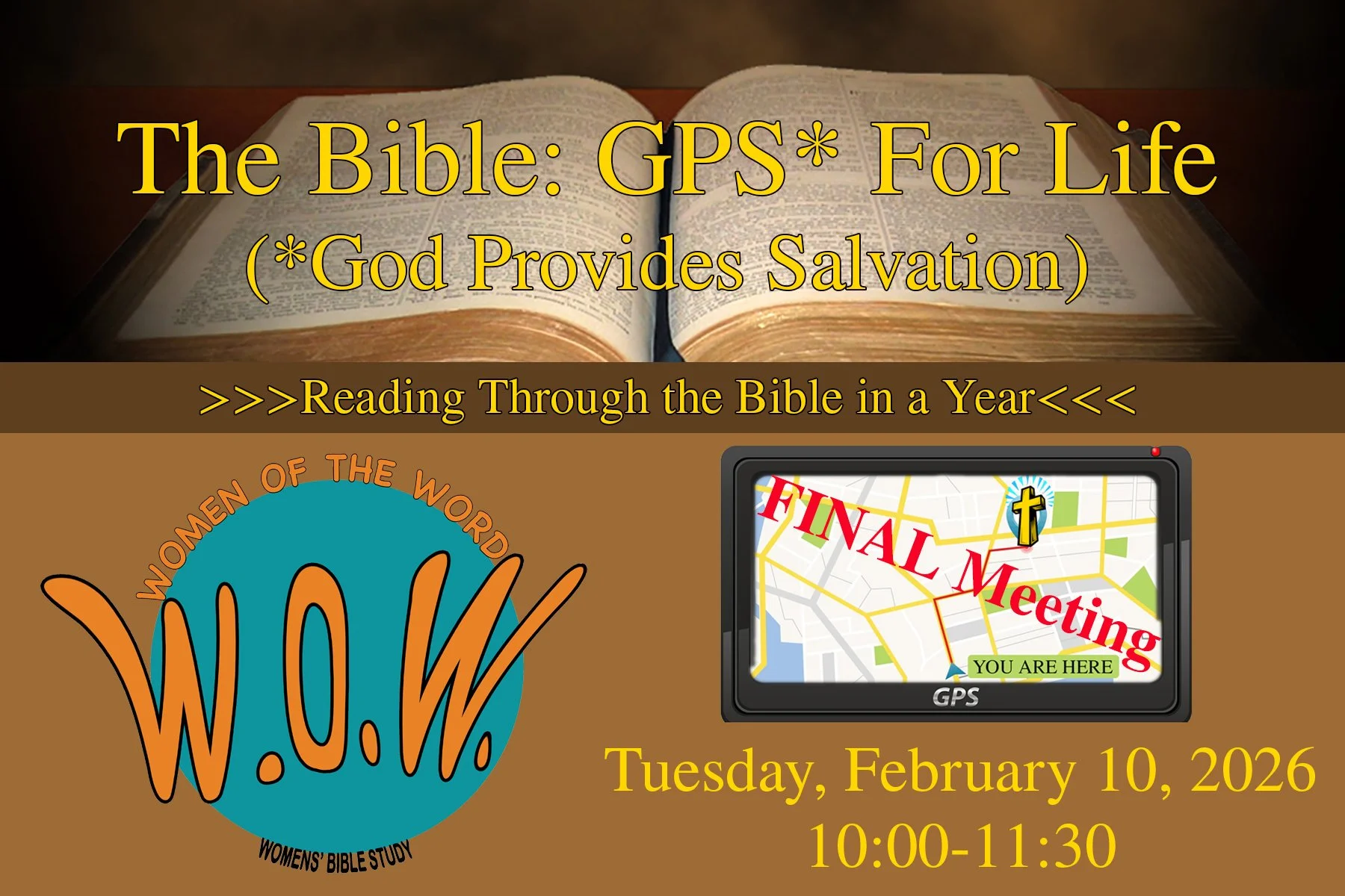 Ladies Bible Study (Final Meeting) Tuesday, February 10, 2026 10:00 AM 11:30 AM 10:00 11:30 Temple Baptist Church 11222 Maple Avenue Hesperia, CA, 92345 United States (map) Google Calendar ICS Ladies! Come join us as we wrap up our GPS For Life Bible Study!
